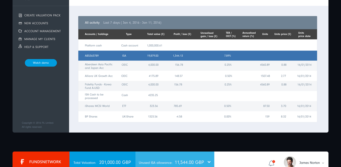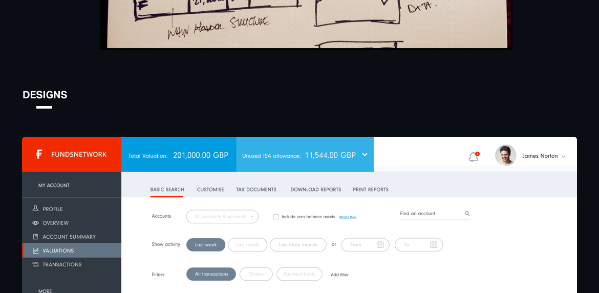 I was approached by Fidelity to come on board as their lead designer and this small project was a design task. They wanted to move away from the old look and feel of what they had currently on their user dashboards. I was given some wireframes to work off and given a day to come up with a new look for their dashboard. I came up with a more sophisticated and clean looking design to what they currently had.
