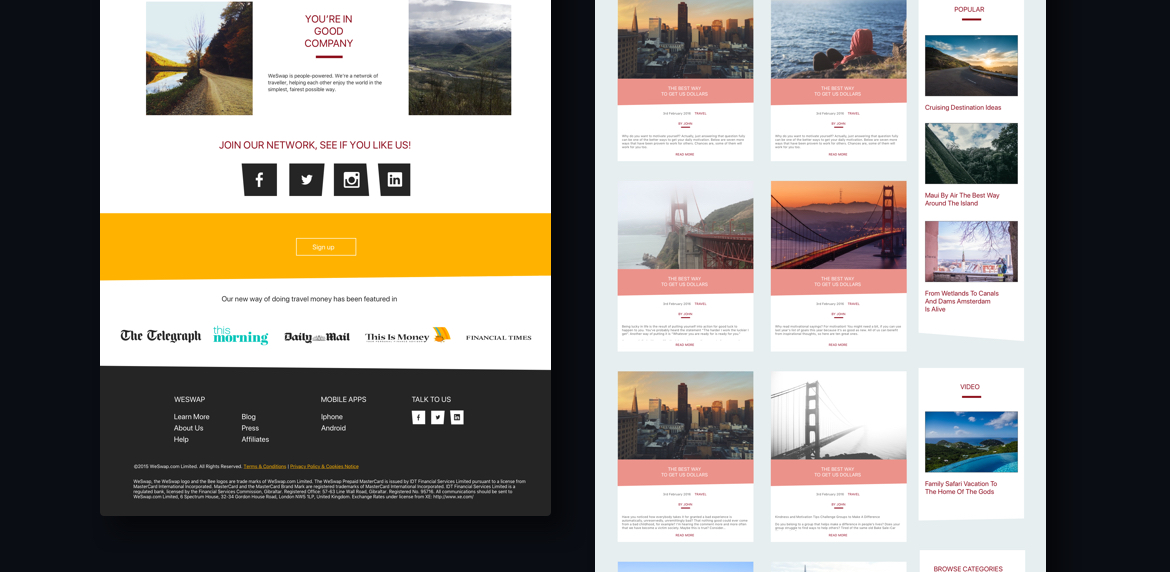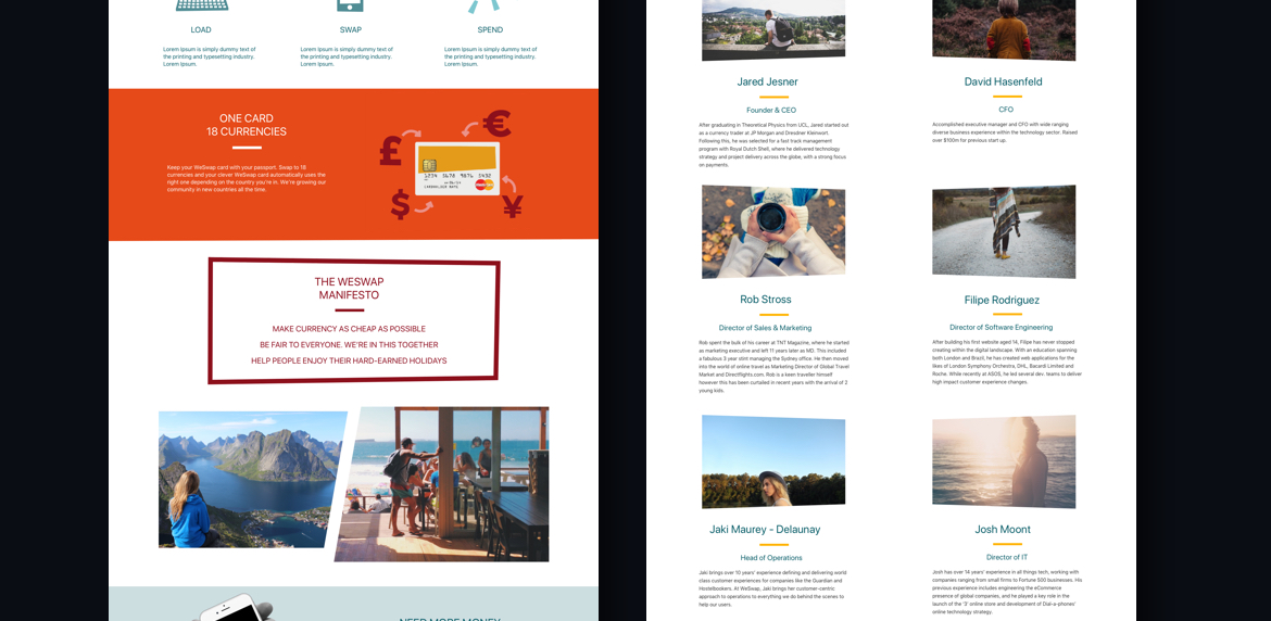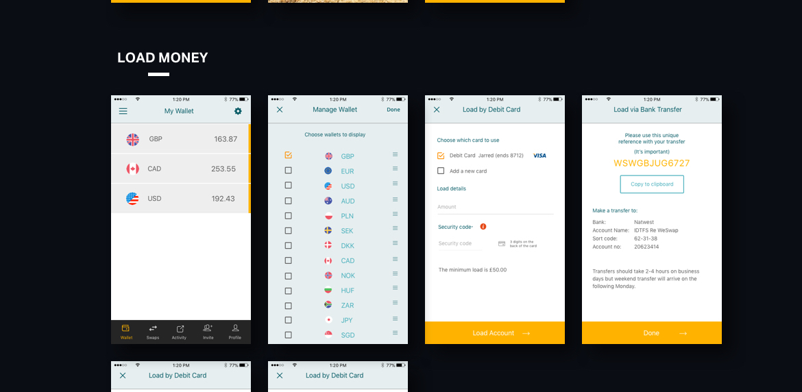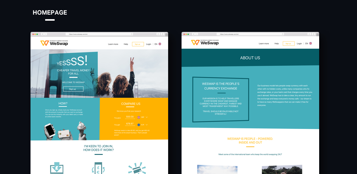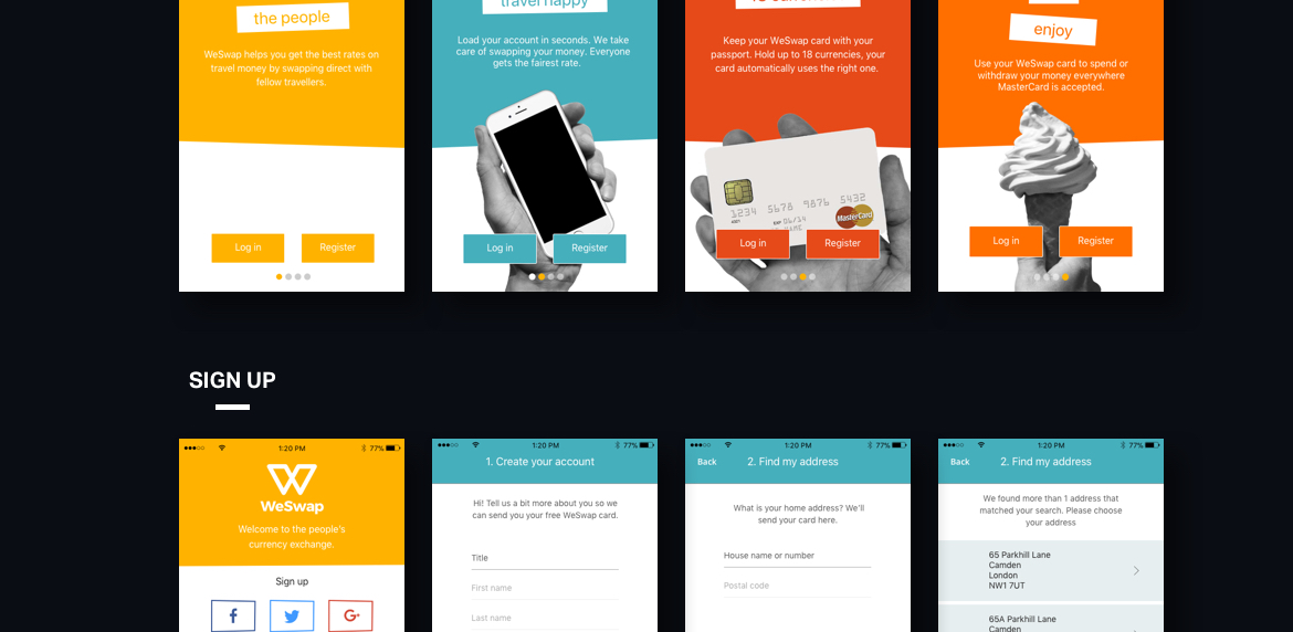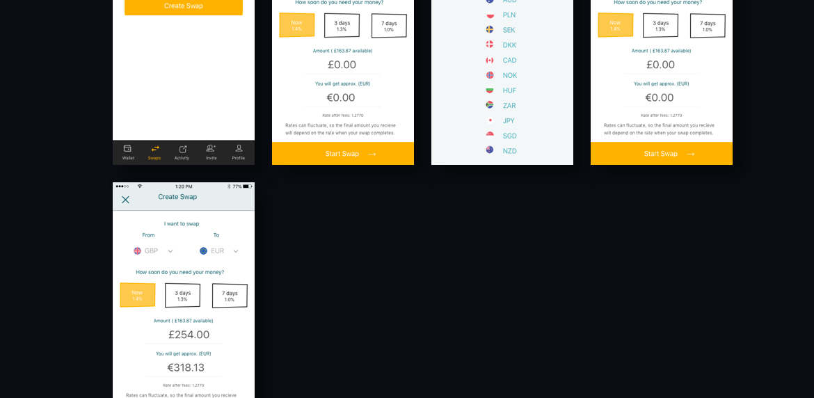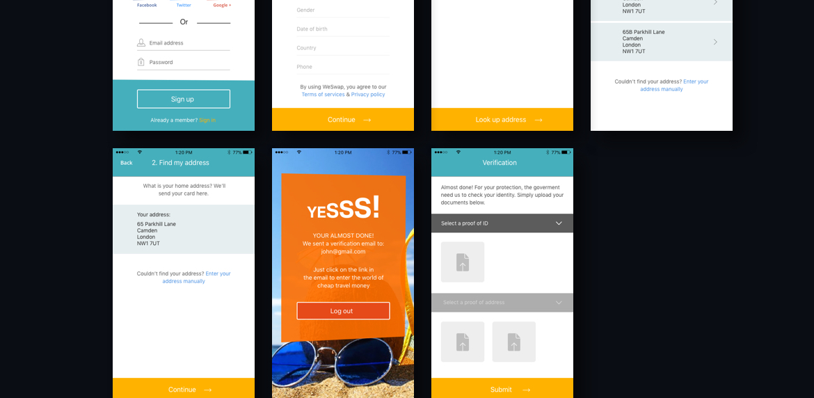 We worked on the user journey's as we designed as we were really tight on time and WeSwap did not have the capacity and funds to be able to spend a large amount of time on UX. We had to get out an MVP so that we could get early feedback and be able to ship a product that would work. Even though we only had 2 months to get the product out we managed to get positive feedback on the app. I enjoyed working with WeSwap as it was a startup everything just seemed really tightly knit. I worked with the developers on a daily basis making sure that the designs matched what they had developed.